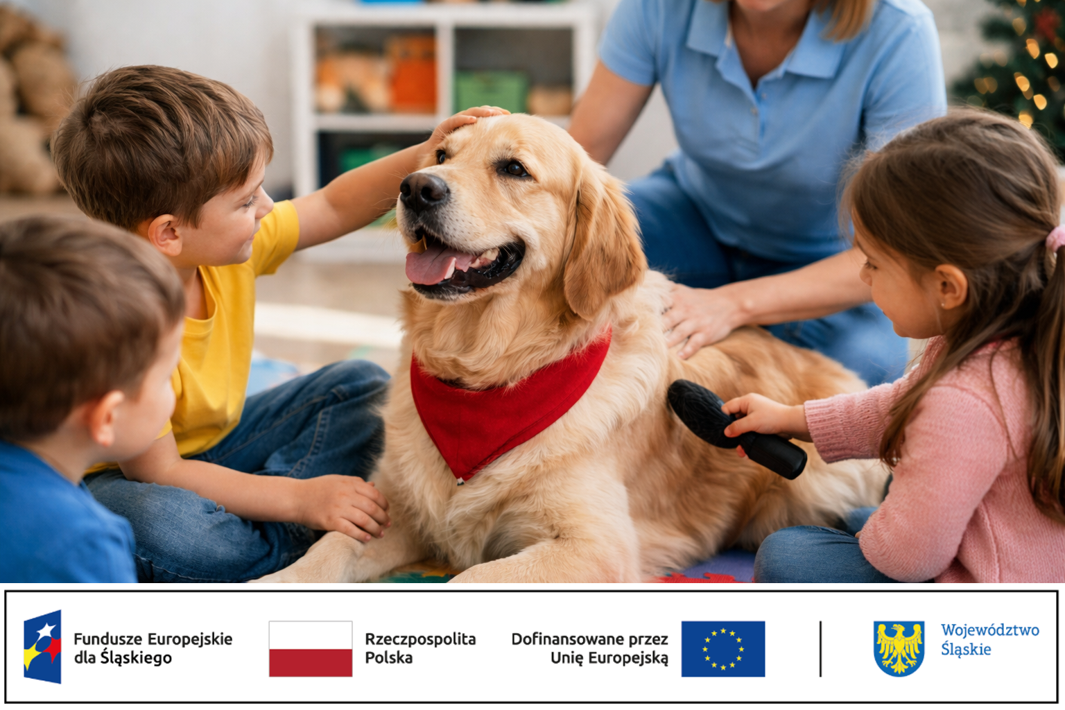 Uczestnicy projektu Anielskie Wsparcie biorą udział w zajęciach dogoterapii, które stanowią ważny element wsparcia terapeutycznego dzieci.