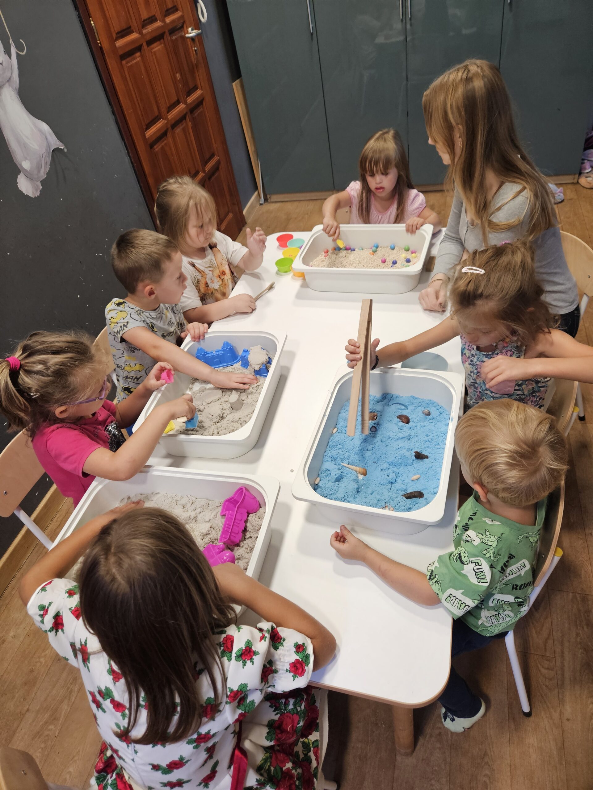 Sensoryczne przygody (Katowice): Najmłodsi (2,5–5 lat) odkrywali świat przez zapachy, dźwięki i piasek kinetyczny podczas warsztatów stymulujących zmysły.