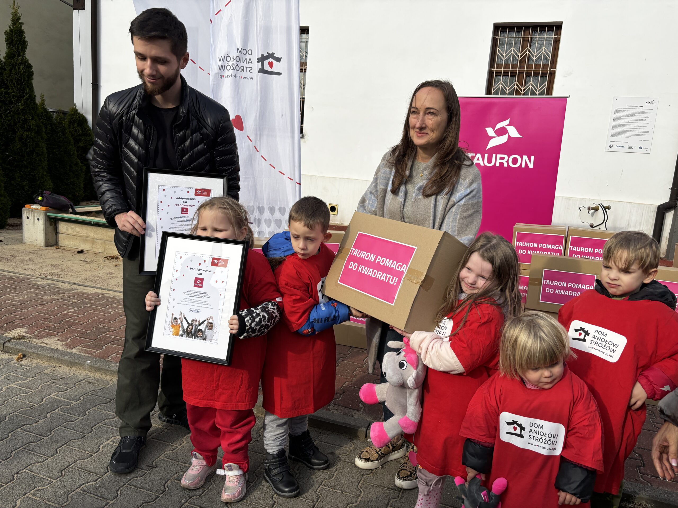 TAURON Polska Energia, nasz Partner Główny, po raz kolejny okazał ogromne wsparcie w ramach siódmej edycji akcji „Pomagamy do kwadratu”. Firma przekazała Domowi Aniołów Stróżów dary rzeczowe – żywność, środki czystości, chemię gospodarczą oraz artykuły potrzebne do zajęć z dziećmi.