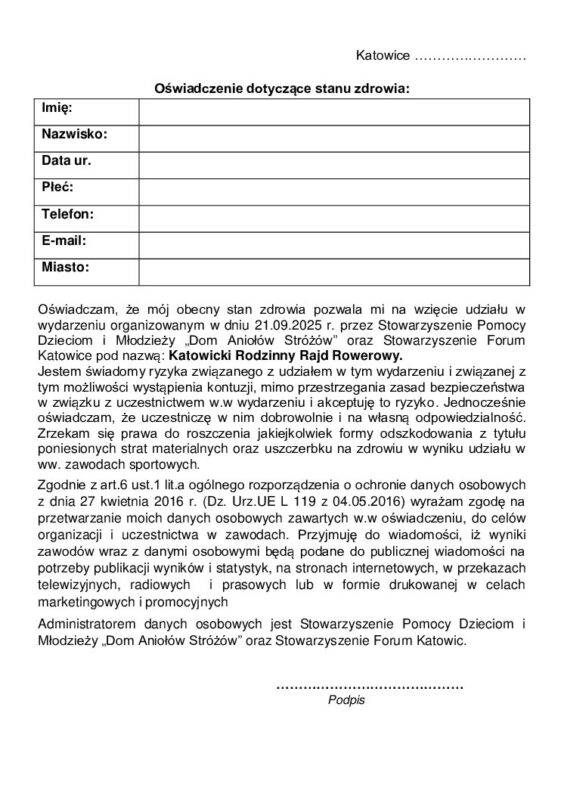 Oświadczenie zdrowie dorośli Rajd 21.06.2025